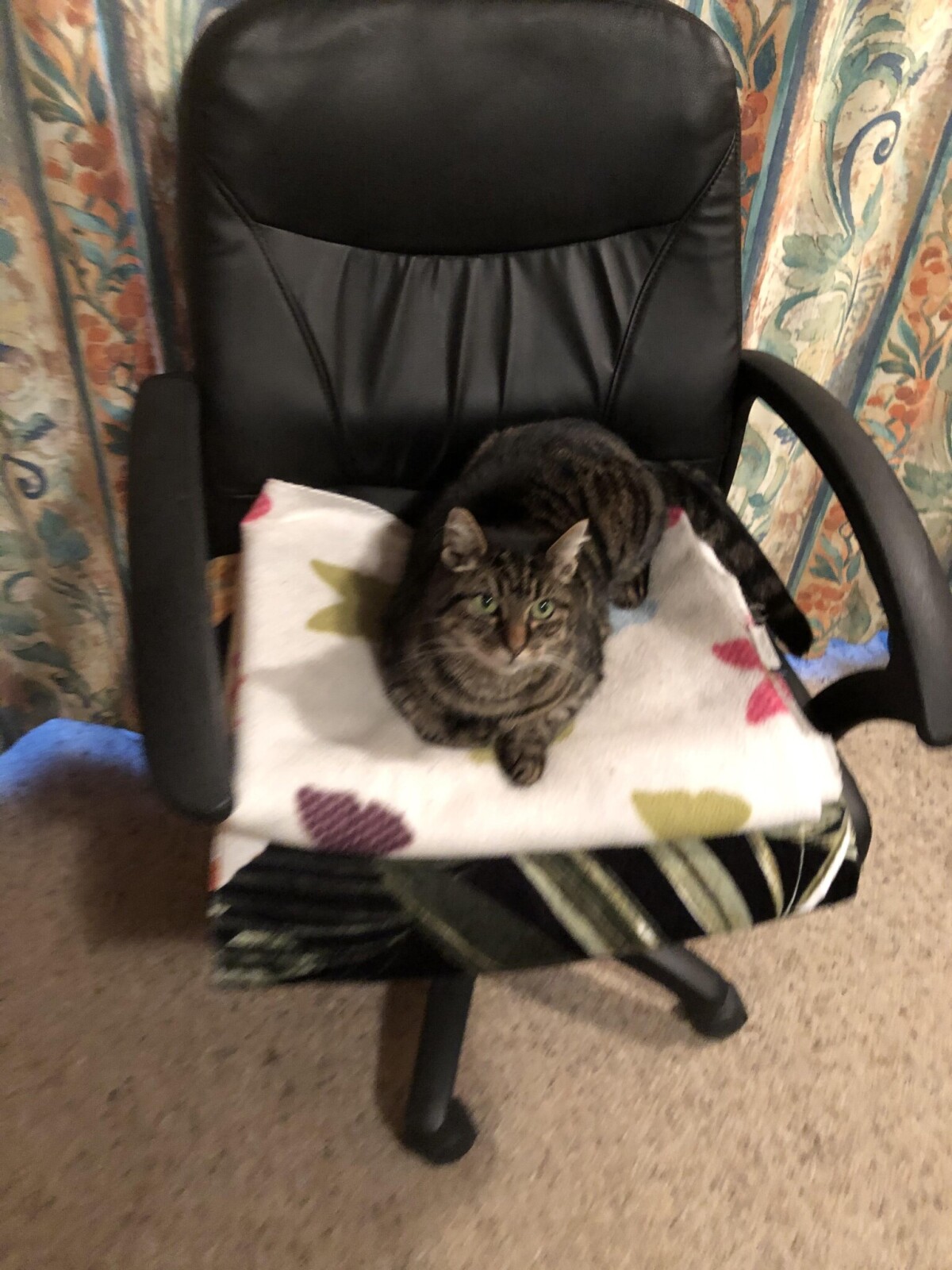 Deneka resting on chair.