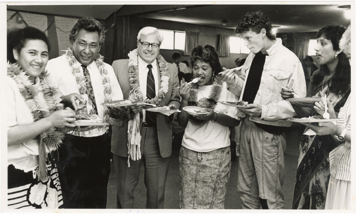 Galua Laloata (left), Herman Ah Kuoi, Frank Crothall, Tiony Maurice and Asne Devi at a Salvation Army Access course graduation ceremony. The course was designed to provide training in traditional Pacific Island skills.