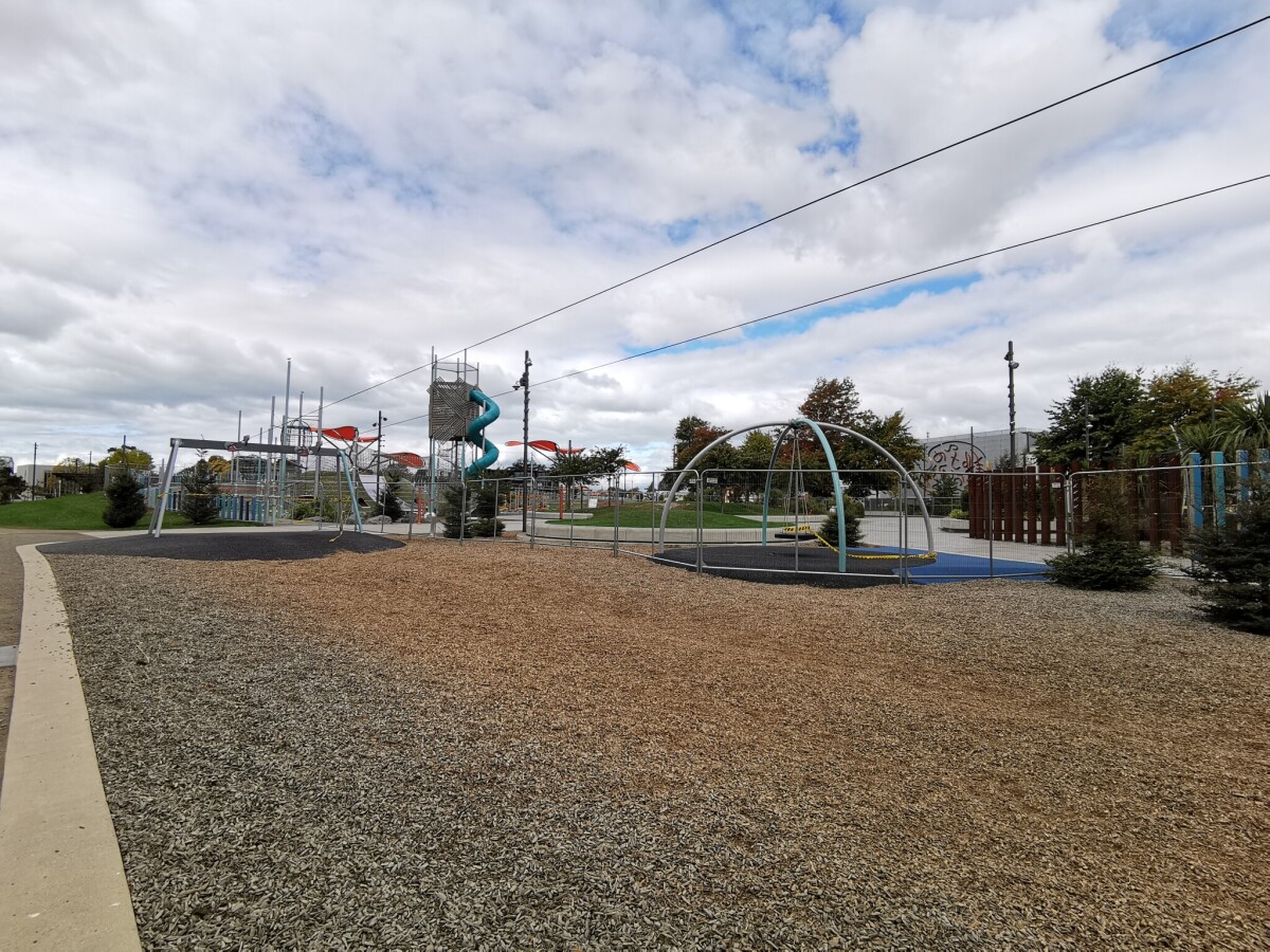 During the Covid-19 Level 4 lockdown, Margaret Mahy Park had to be fenced off - not that anyone should've been climbing or swinging on anything anyway.