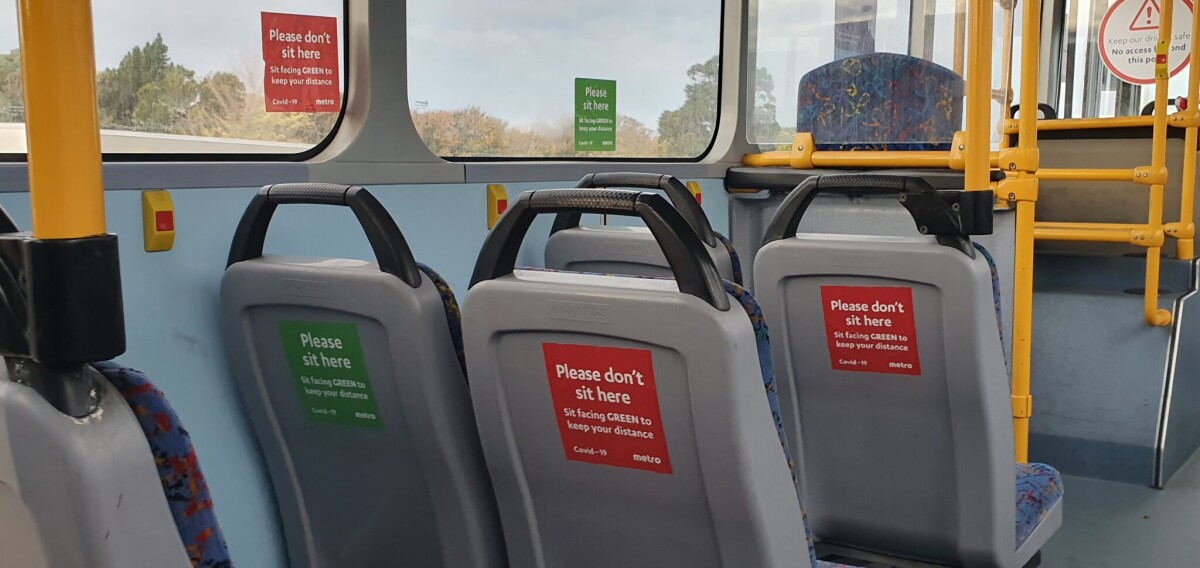 Christchurch buses moved to new precautions under Level 3 lockdown, with application of social-distancing warning stickers on every seat. Couldn't help wondering who got the task of printing & applying those thousands of labels!!