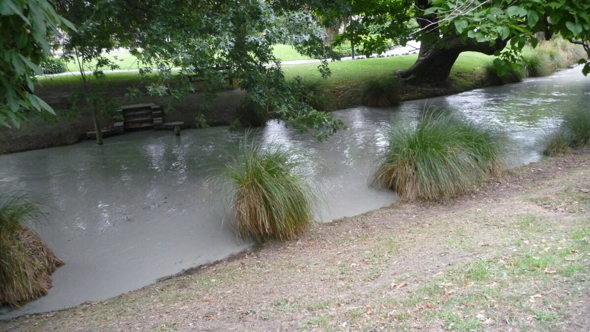 Following 22 Feb 2011 quake, the Avon River running through town suddenly turned chalky grey-white (due to liquefaction sediment) and rose rapidly in its banks. This photograph was taken on Oxford Terrace in the Central Business District. I was hiking from our office evacuation point in Cranmer Square to my home in Avonside, along all the quake-trashed & flooded & liquefaction-strewn streets ... all still in my office-appropriate tiny strappy heeled shoes. Didn't have any other footwear, and at least it was safer than walking barefoot on broken glass!