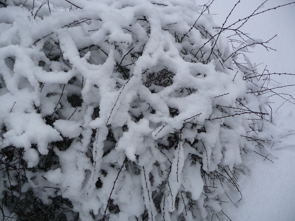Heavy snowfall in mid-August 2011 made amazing patterns covering native shrubs in Avonside. Also made a nice change from months of looking at liquefaction silt & broken pavements....