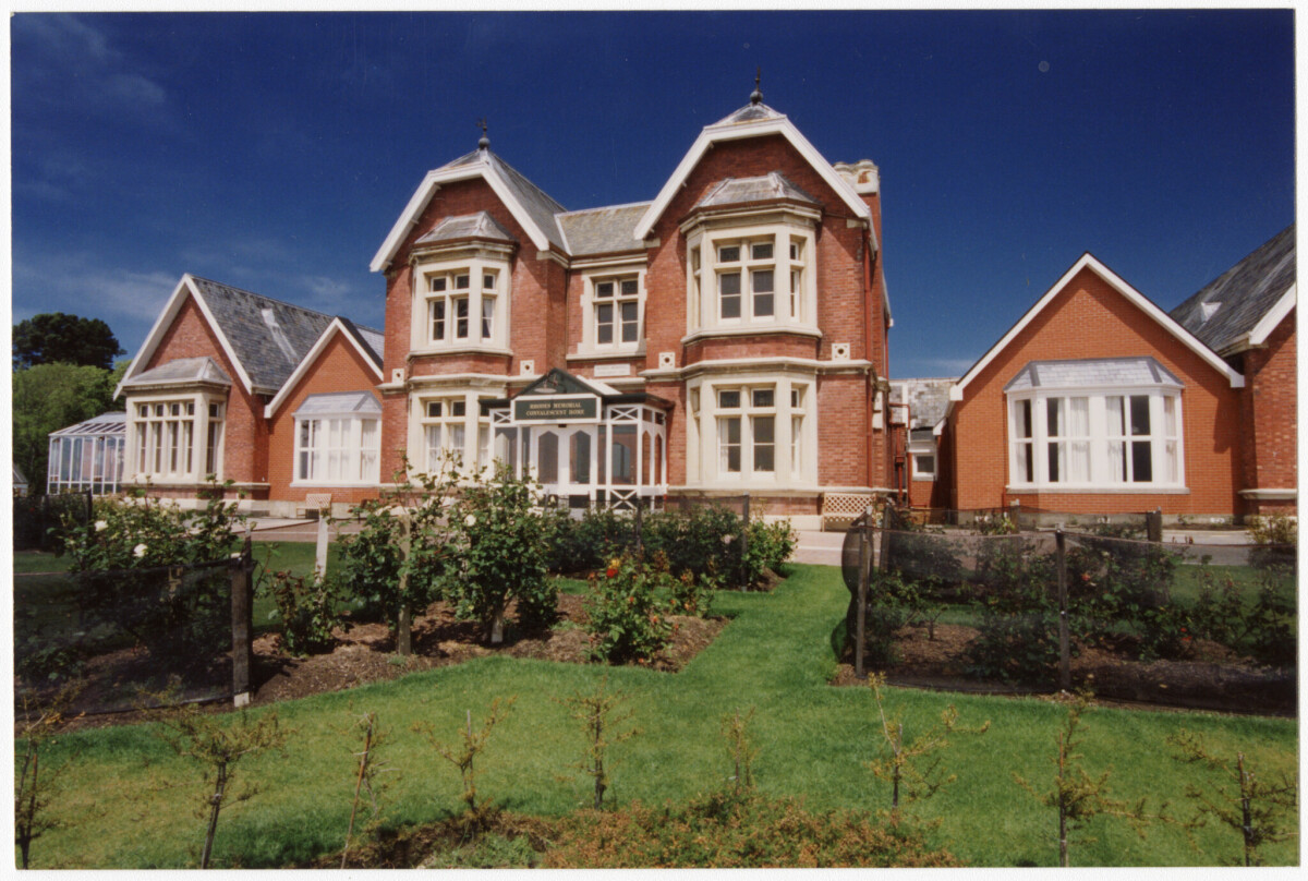 Exterior of the Rhodes Memorial Convalescent home including the rose garden at 34 Dyers Pass Road, Cashmere.