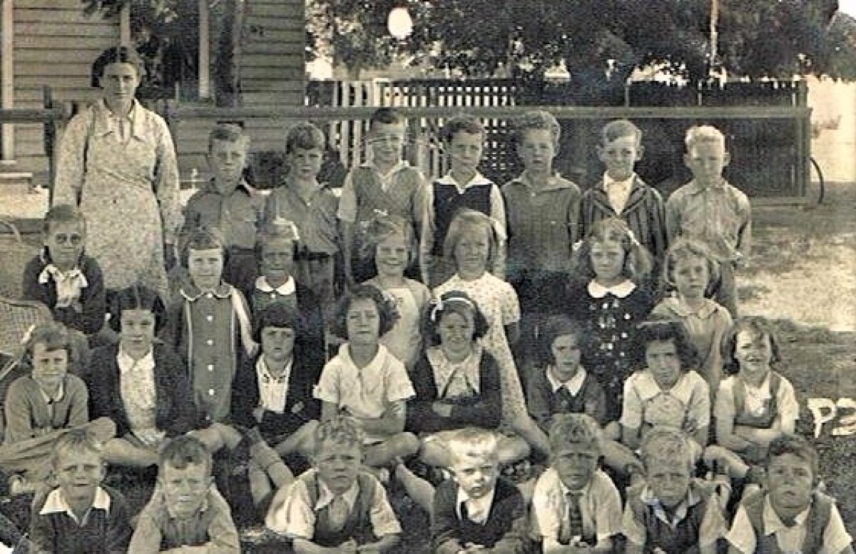 Addington Primary school, class P3 1942. Front row, from right - Gordon Newton, Alan Scott, ?, Bruce Watson,