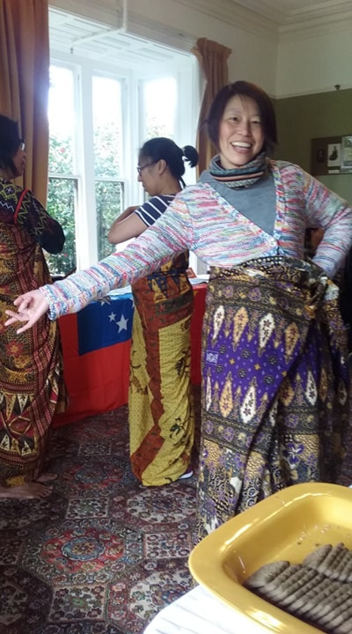 100 Ways of Using Malong event at Avebury House's "A Taste of Culture" in celebration of the Adult Learning Festival week. The malong is a large wrap-around tubular garment measuring at least 165 x 165 cm. They are used by the Maranao and Maguindanao from southern Philippines. It can be worn in many ways by women and men.