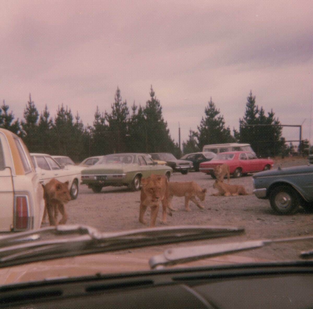 A view of the Orana Wildlife Park's carpark, taken from behind the dashboard of Athol and Edna Hines' 1977 Triumph 2000