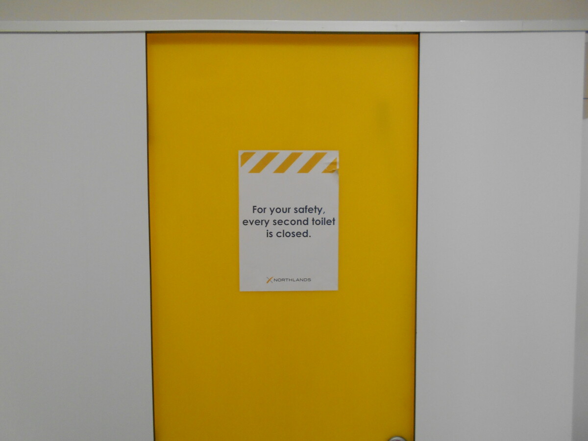 Sign on Toilet door in side Northlands mall toilet.