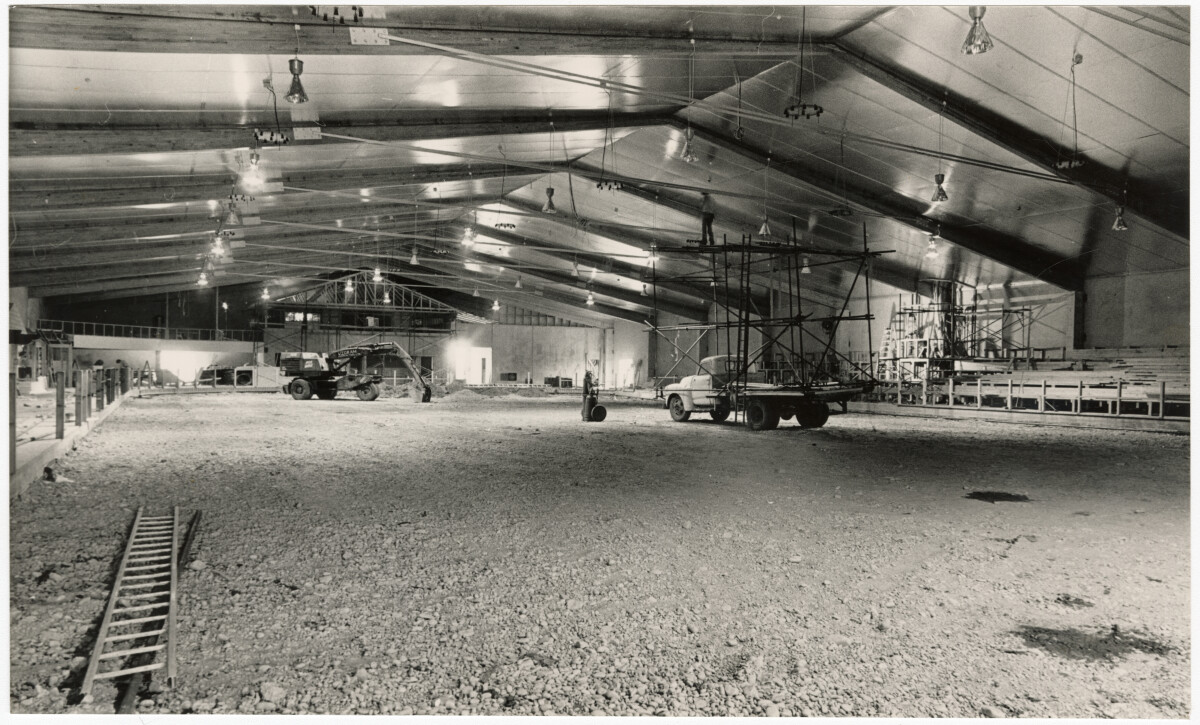 The interior of the Big Apple ice skating rink under construction, prior to pipelaying under the soon-to-be ice rink.