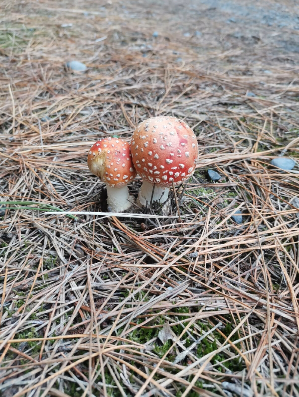 Autumn toadstools among the pine needles in Bottle Lake Forest.
