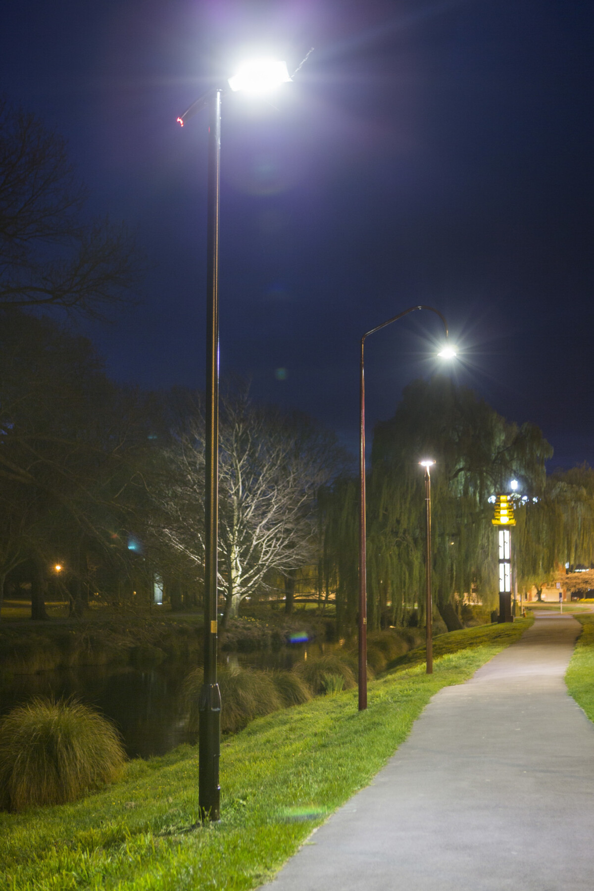 Image of detail of Solidarity Grid by Mischa Kuball, Street lamps in situ along Park Terrace. Commissioned by the Christchurch City Council Public Art Advisory Group. Produced by SCAPE Public Art.