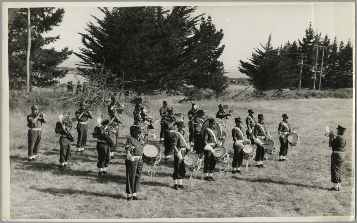 The 1st Canterbury Regimental Band rehearsing on the grounds of Burnham Military Camp.