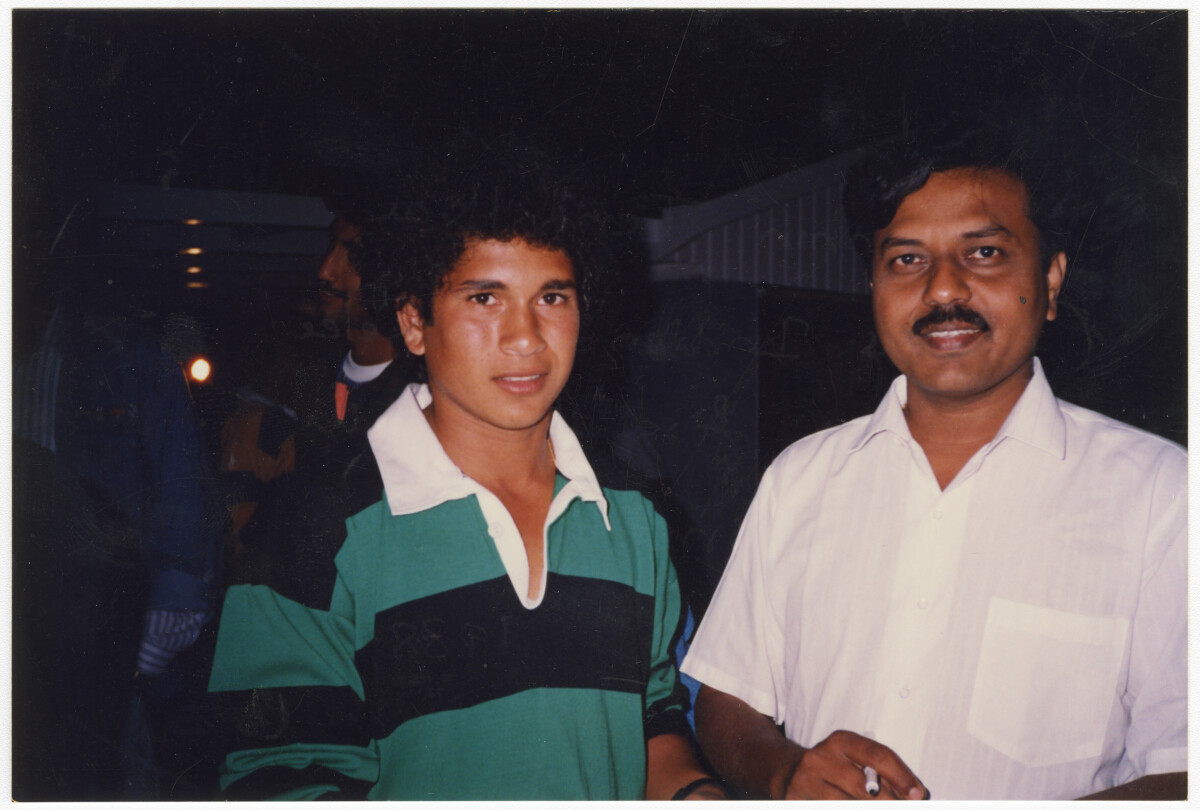 A member of the Gopal family with Indian cricketer Sachin Tendulkar during his first time visiting and playing in Christchurch.