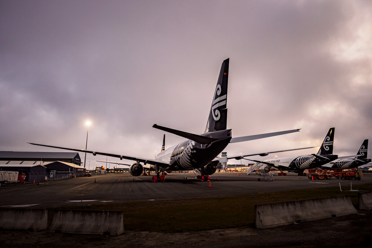 "Rows of Air New Zealand long-haul Boeing 777s parked for storage at Christchurch International Airport. Flight operations all but stopped during the COVID 19 lockdown." - Contributor's note