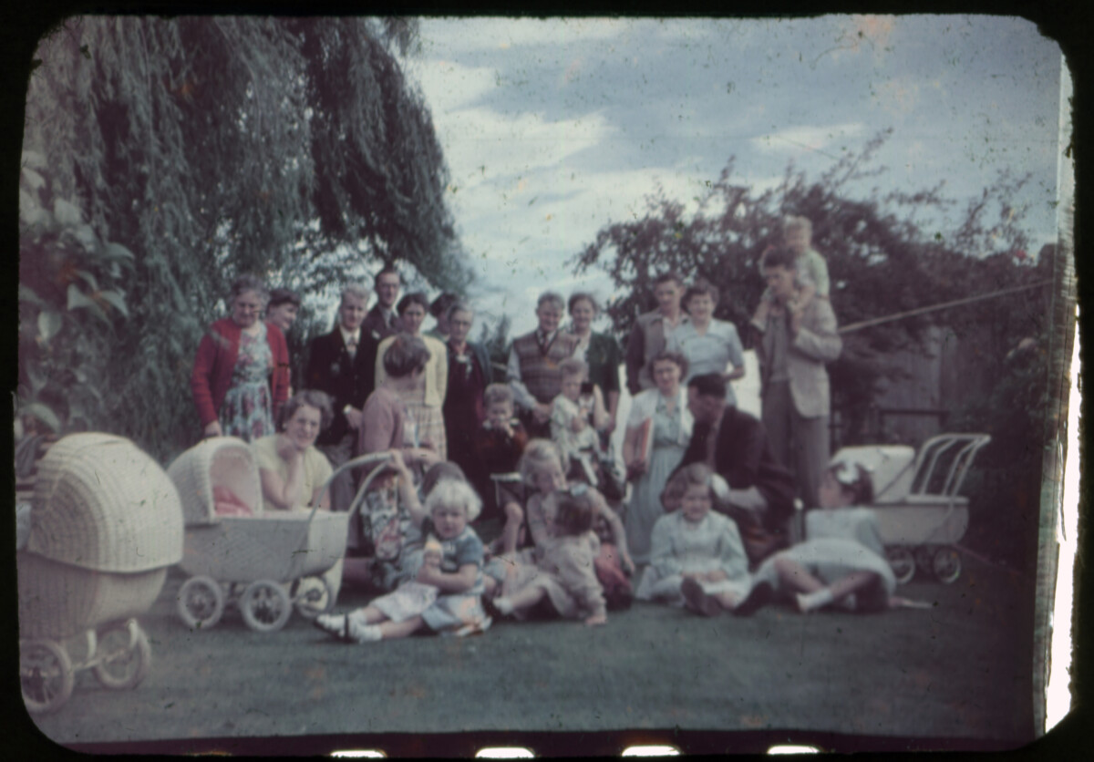 A group of cousins from the Matthews family including children and prams.