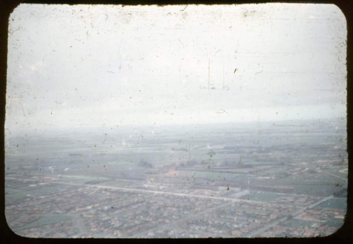 Aerial view of Upper Riccarton looking south east. In the centre is Blenheim Road.