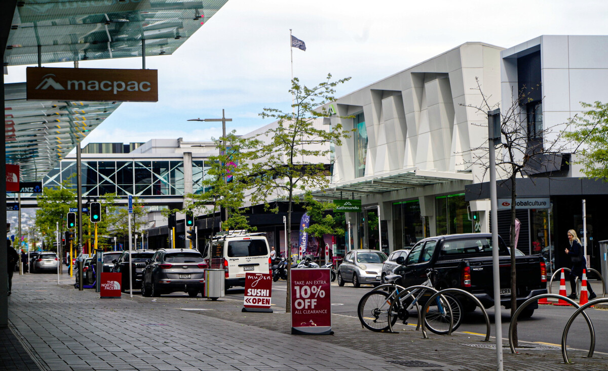 Cashel Street looking west toward the Bridge of Remembrance