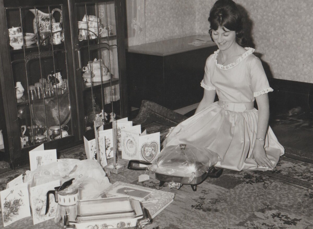 "In 1963 I [Kareen Luscombe] turned 21 years old. Here I am admiring my birthday gifts." - Contributor's note