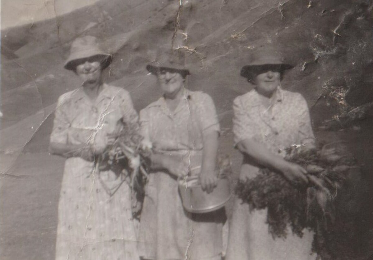 "Freshly picked vegetables for dinner at Oyster Bay, Marlborough Sounds. My grandmother Elizabeth Windsor, great aunt Ada Heberley and other grandmother Phoebe Luscombe. Ada's son Charlie Heberley was a whaler at Perano Whaling Station in Te Awaiti Bay." - Contributor's note