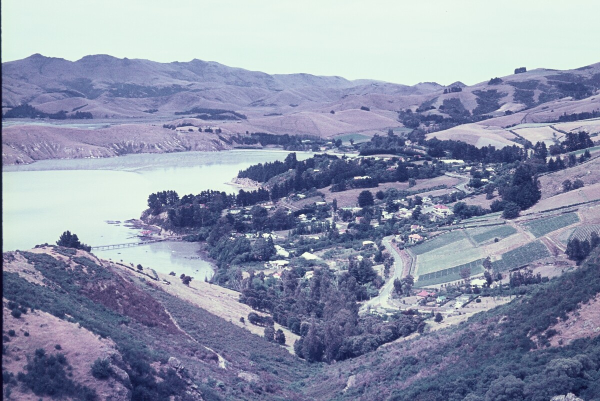 Aerial view of the Port Hills looking from Lyttelton along ...