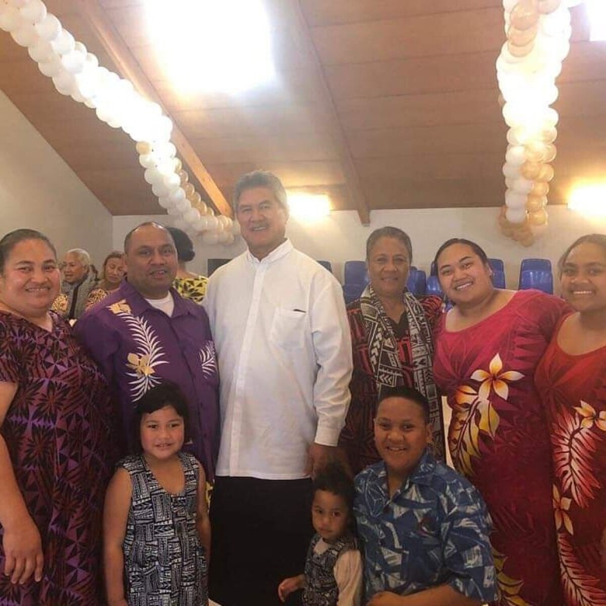Ierome family: Faalogo, Sarai, Tiresa, Su, Gafatasi, Fouraiana & Tafilie with Samoan Methodist President & Wife.