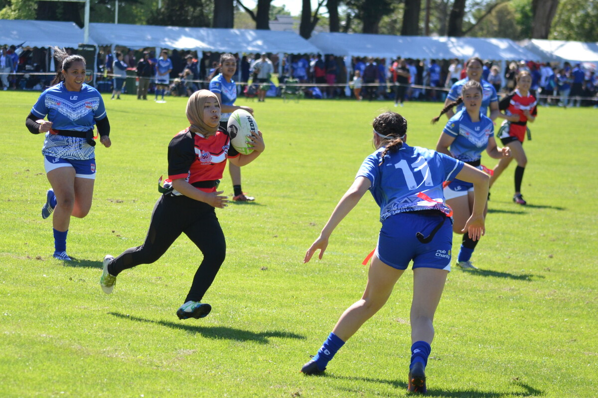 Youth girls team vs Malie women's nine aside rugby league. Malie is the South Island NZ Samoan team.