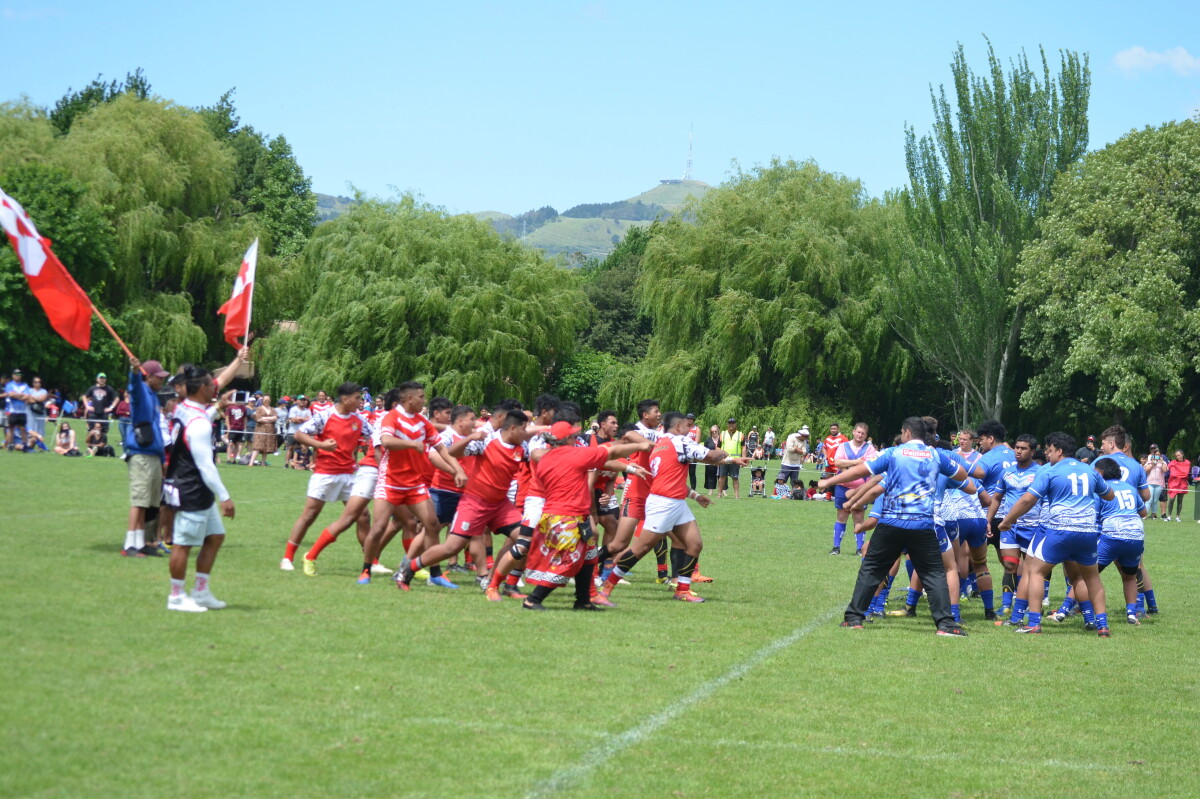 Rugby League teams Malie and Tongan youth team challenge. Malie is the South Island NZ Samoan team.