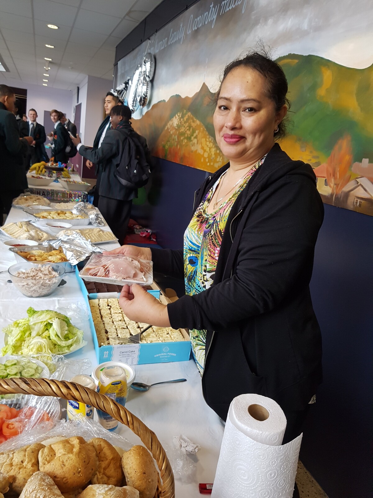 Sioeli Ofa's mother at son's surprise birthday party at school. Performing Arts Centre Foyer, Middleton Grange School 2019.
