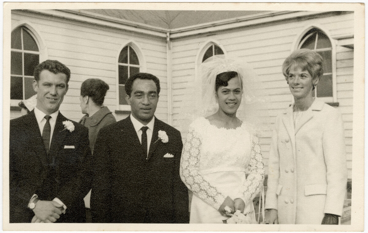 Tua Tangiiataua and Puretu Autaua – their wedding day at the church on the corner of Ferry Rd and Leyden St, Phillipstown.