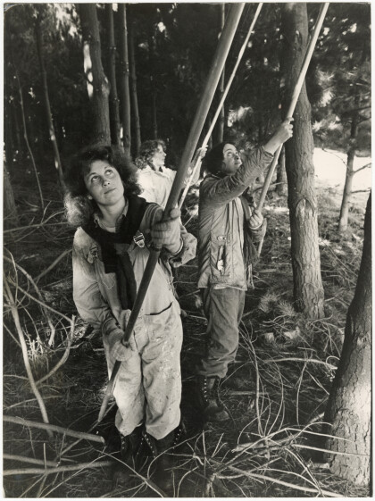 Workers of the Taua Mahi Trust pruning trees at Stewarts Gully.
