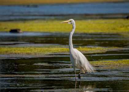 White heron/kōtuku at Brooklands Lagoon