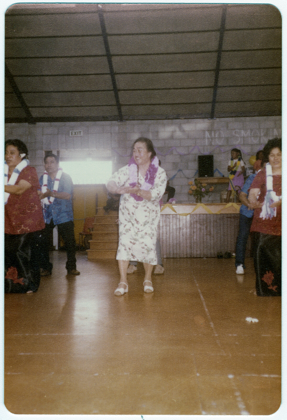 Auafa Te'evale, Tagaloa Te'evale, Fa'avaoa Faletoese and Tulouna Mulipola, doing a siva samoa at St Pauls Trinity Pacific Church hall, Cashel & Madras Streets