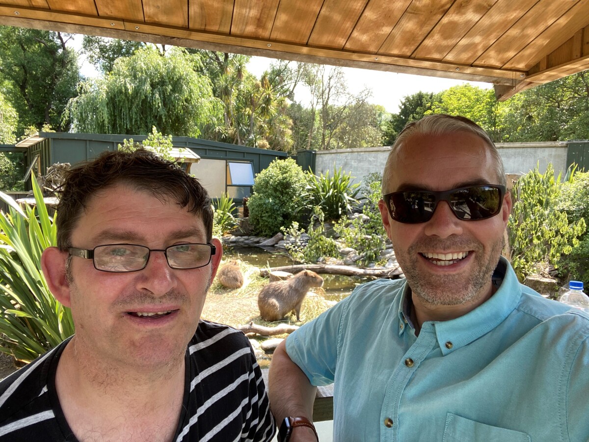 Mark (right) and Raymond by the capybara enclosure at Willowbank Wildlife Reserve in Northwood during an International Volunteer Day trip as part of the IHC Volunteer Friendship programme in Christchurch. Every year IHC celebrates all the friendships made through the volunteer programme with a meet-up event in Christchurch.