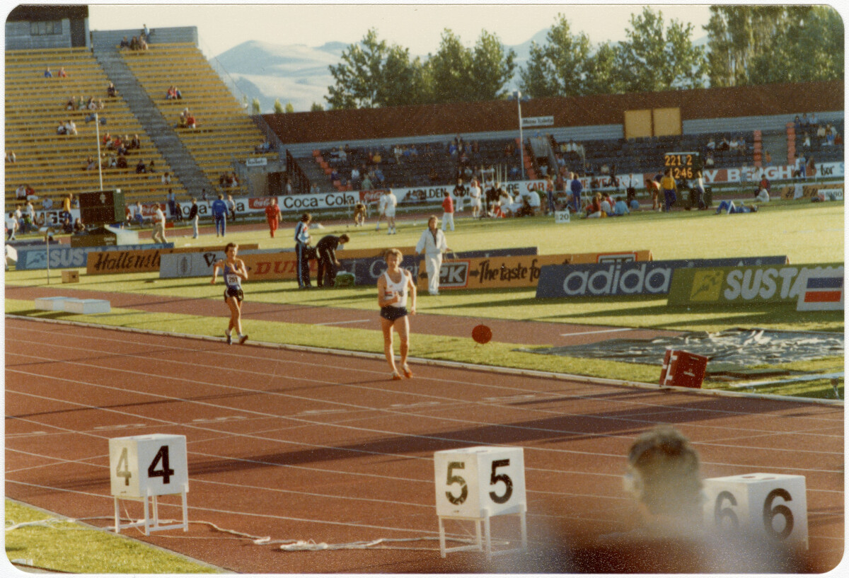 Athletes on the track at an athletics meeting prior to the 1974 Commonwealth Games at Queen Elizabeth II Park.