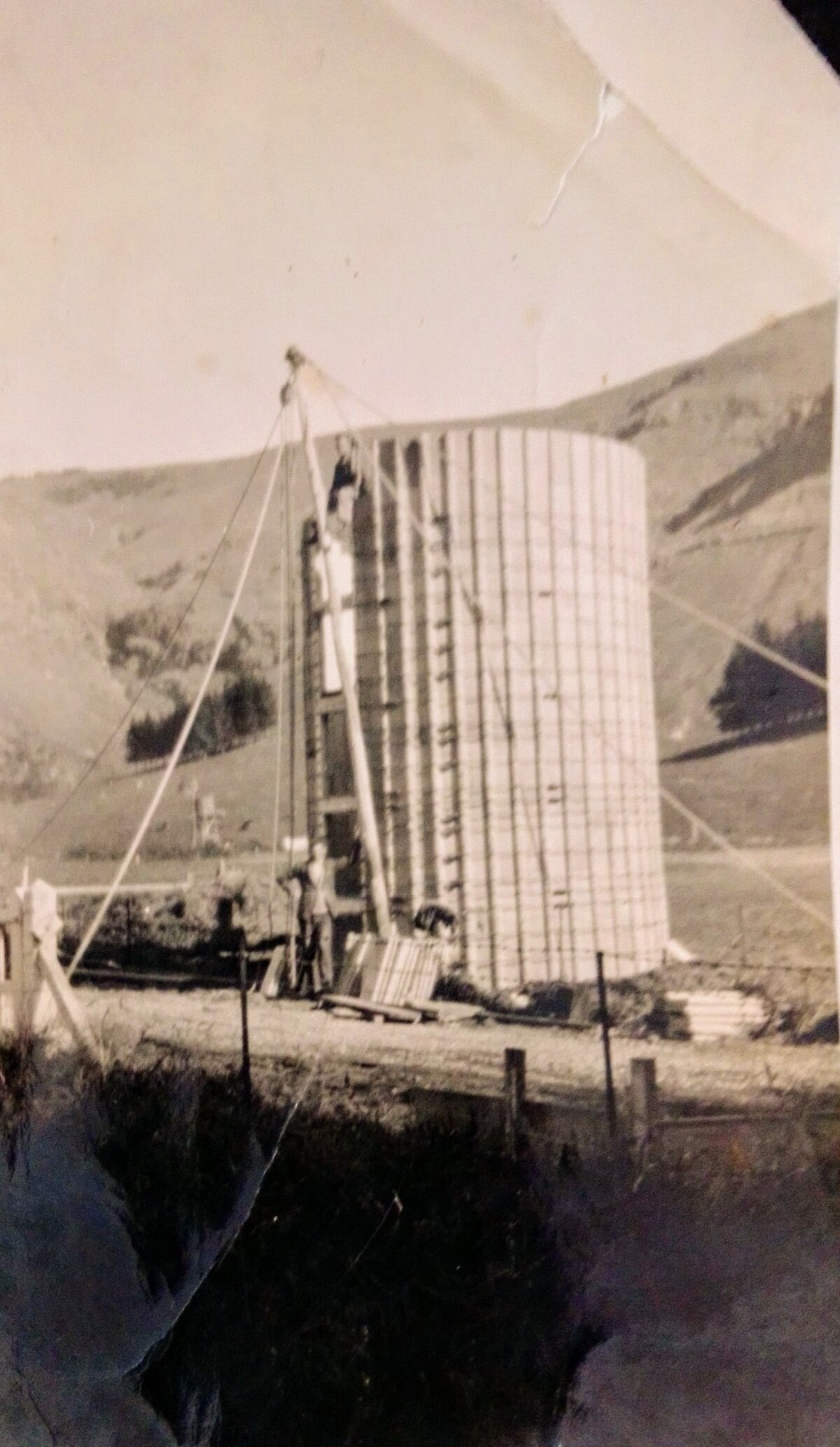 On the back of the photo it reads: Silo made by Hume Pipe Co. Erected by H. Pearce & M. Willan at Sumner 1929. Mark Willan is my husband's grandfather.