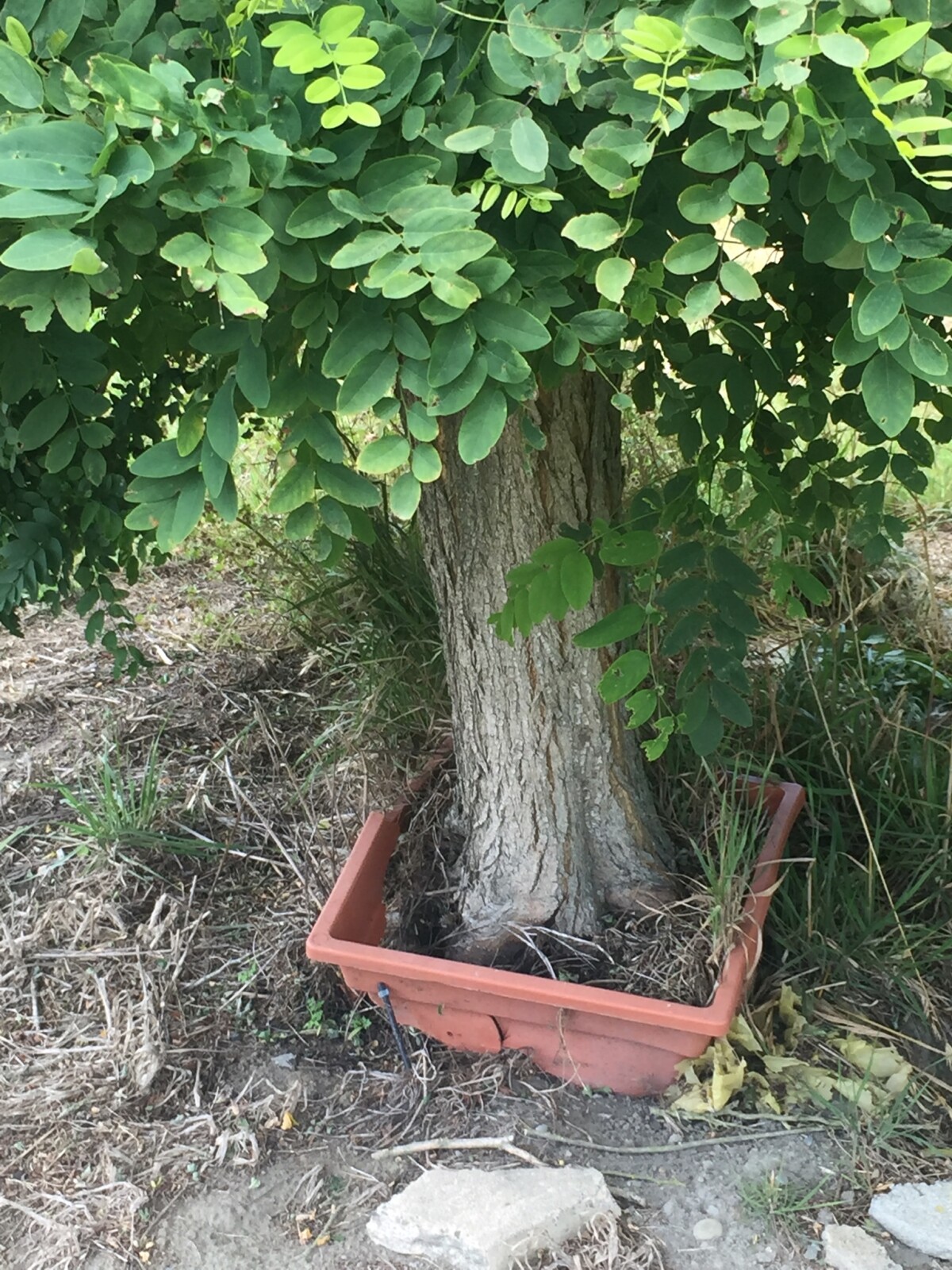 A slightly pot-bound robinia tree in the Horseshoe Lake red-zone, 10 years after the 2010-2011 earthquakes.