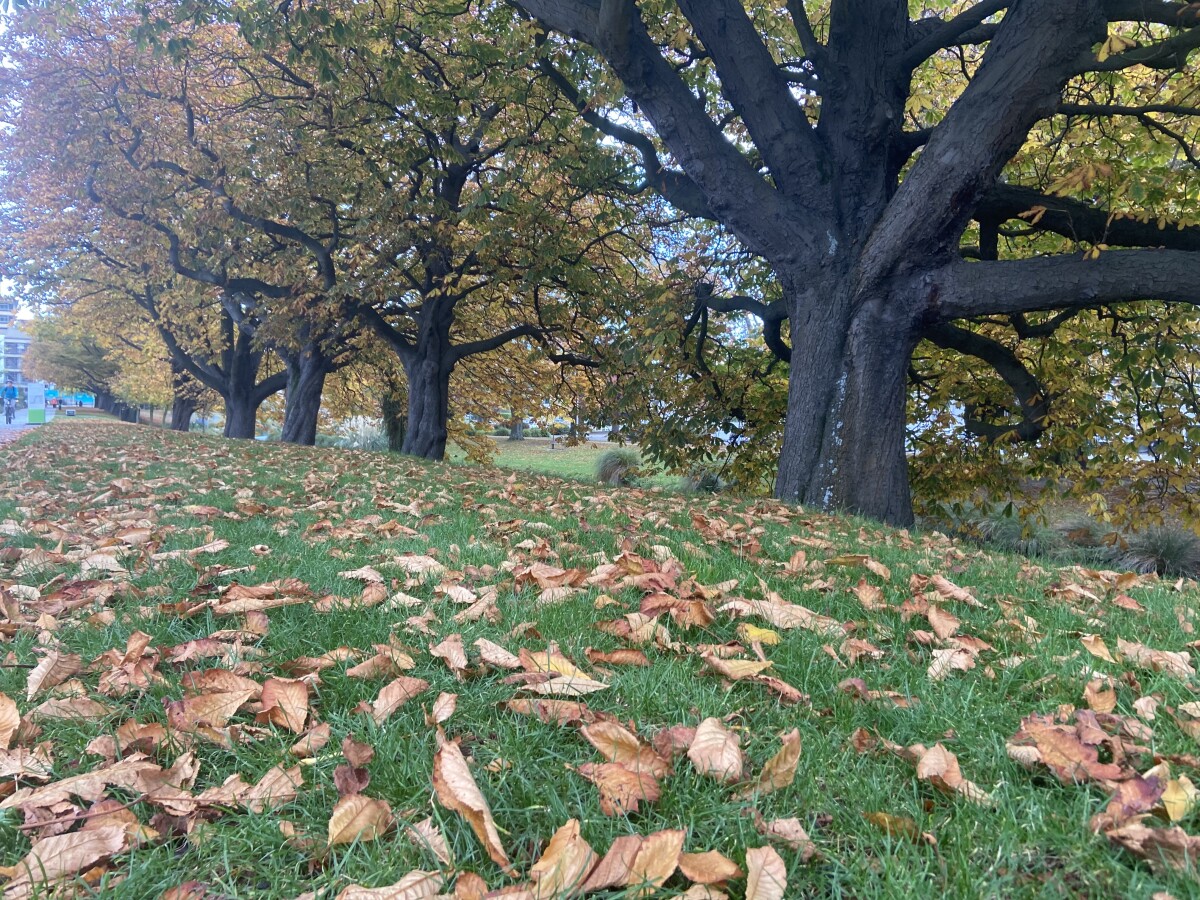 A view of Avon river bank in autumn while walking down Montreal street.