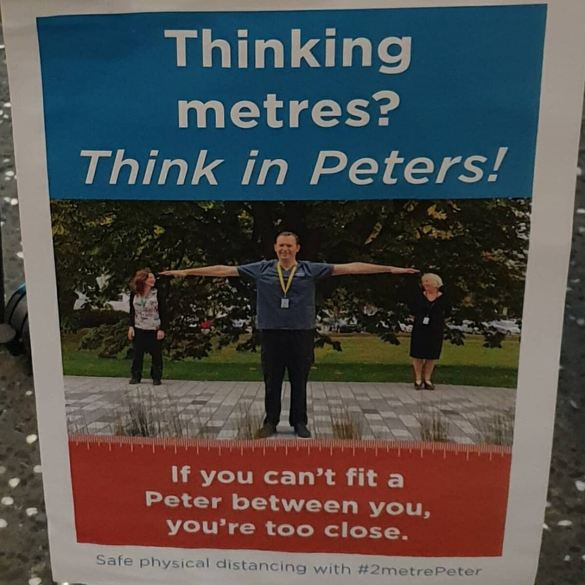 Life in the time of Covid. Poster encouraging physical distancing seen at Burwood Hospital.