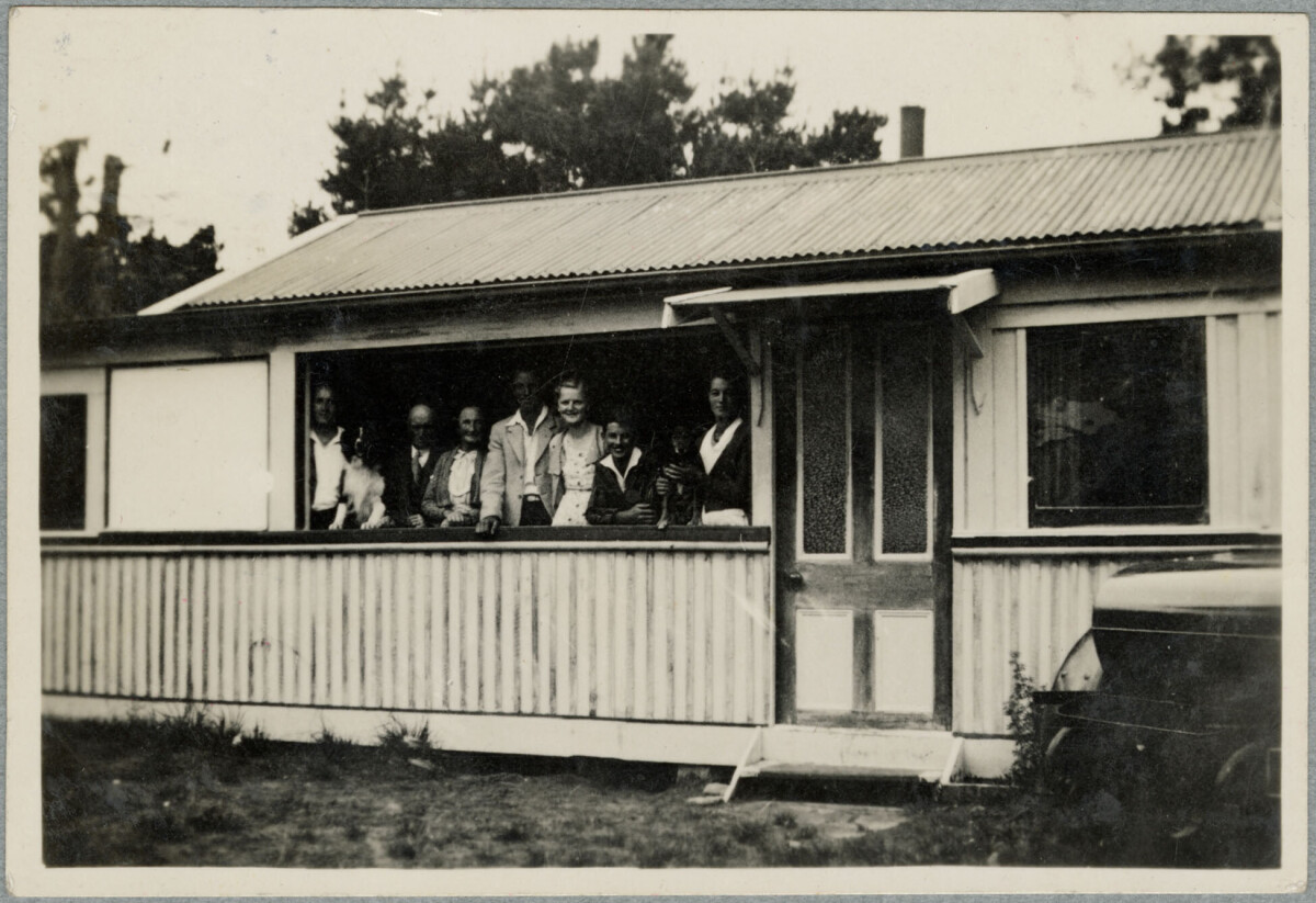 Holiday makers at a bach on Bridge Street watching the water rise before moving to a two-storey house next door. The flooded Ashley River broke its banks and came through Waikuku Beach.