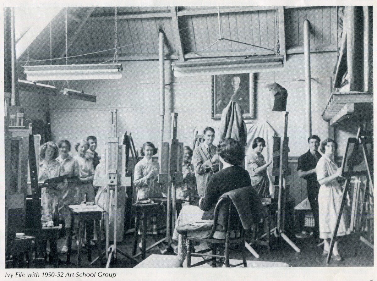 Ivy Fife with students of the Christchurch Art School 1950-52.