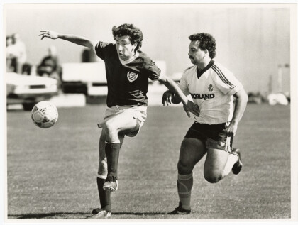Gameplay action of Christchurch United scorer Allan Carville ...