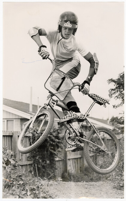 Scott Paterson, age 11, on a go-kart on a fly-over at the QEII ...