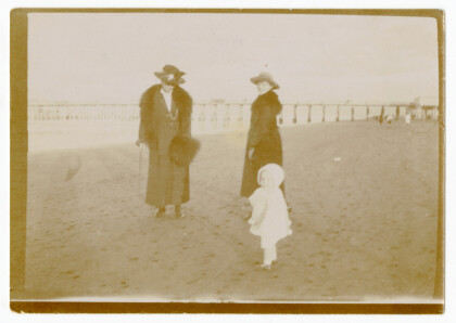 Edith Hemmings on the beach at New Brighton with an unidentified ...