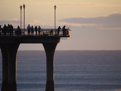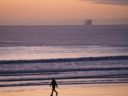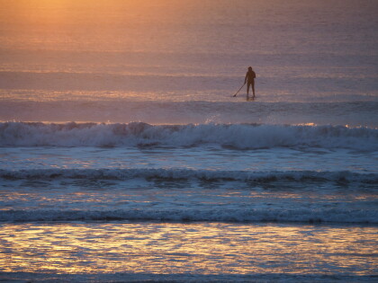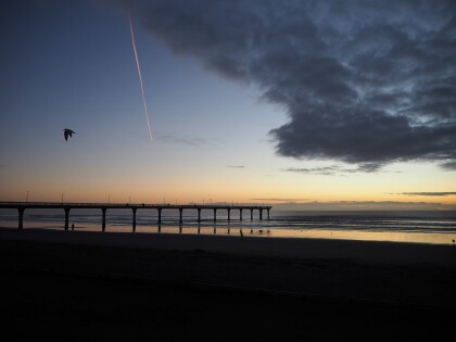 Start of a new day at New Brighton, Anzac Day 2022. A bird and a ...