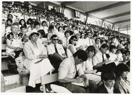 Packed stands at QEII park Stadium with Jehovah's Witnesses ...
