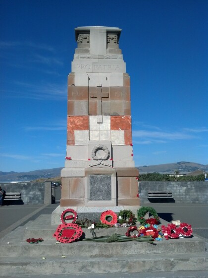Wreaths at New Brighton War Memorial on Anzac Day 2015.