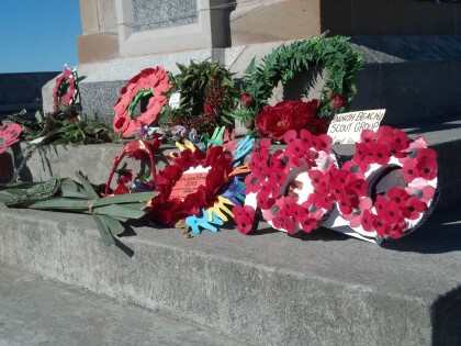 Wreaths at New Brighton War Memorial, Anzac Day 2015