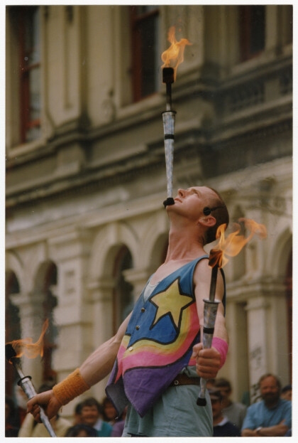 John Davey, the Amazing Mr Moon, gives a performance with fire ...
