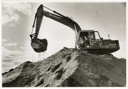 Excavator reducing the size of a sand dune near Marine Parade.