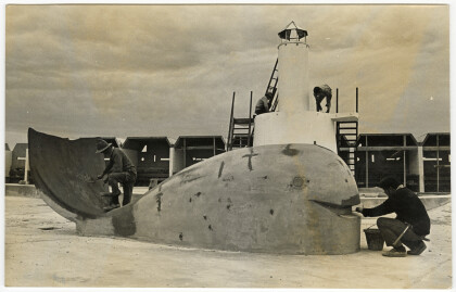 Workmen painting the whale which will feature in the paddling ...