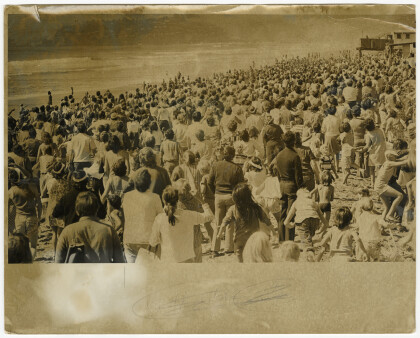 People on New Brighton Beach participating in a ping pong ball ...